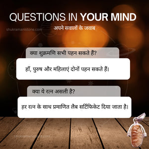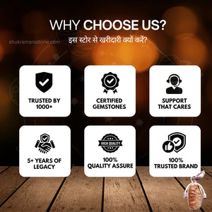 ShukramaniStone.com पर उपलब्ध प्रत्येक stone को natural quality के आधार पर carefully select किया जाता है। Stone को traditional cultural methods से clean किया जाता है और secure packaging में safely deliver किया जाता है।