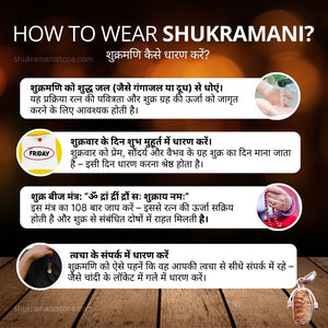 Astrology के अनुसार Shukra ग्रह relationships, comfort, beauty, creativity और material lifestyle का प्रतिनिधित्व करता है। इसी विश्वास के कारण Shukra Mani को पहनने का उद्देश्य जीवन में emotional balance, better relationships और overall stability लाना माना जाता है।